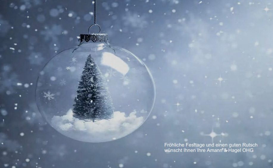 06.12.2022 // Wir wünschen allen unseren Kunden, Geschäftspartnern und Freunden ein fröhliches Weihnachtsfest sowie ein gesundes und erfolgreiches Jahr 2023. Auch in besonders schweren Zeiten lassen wir uns nicht entmutigen und blicken hoffnungsvoll in die Zukunft.